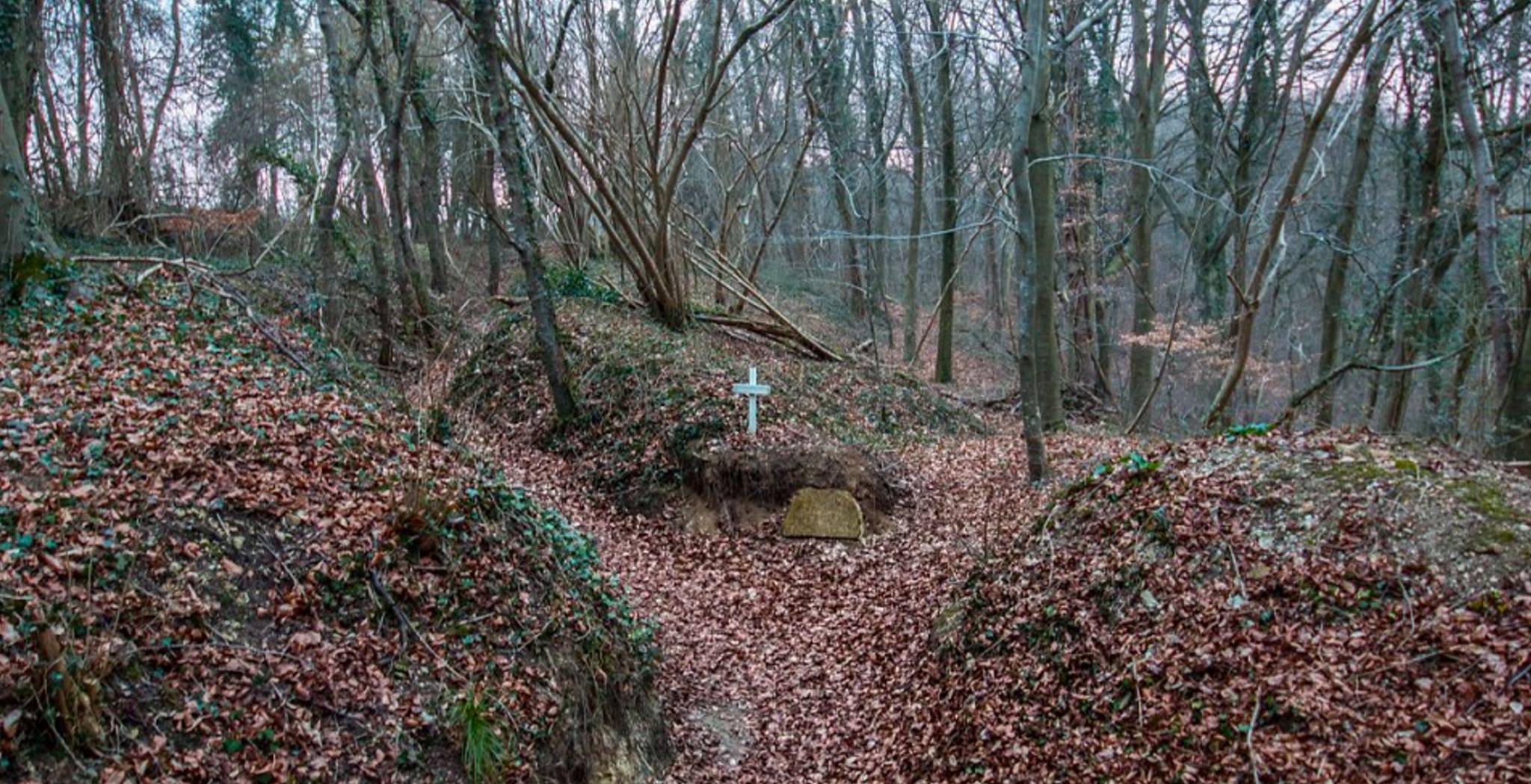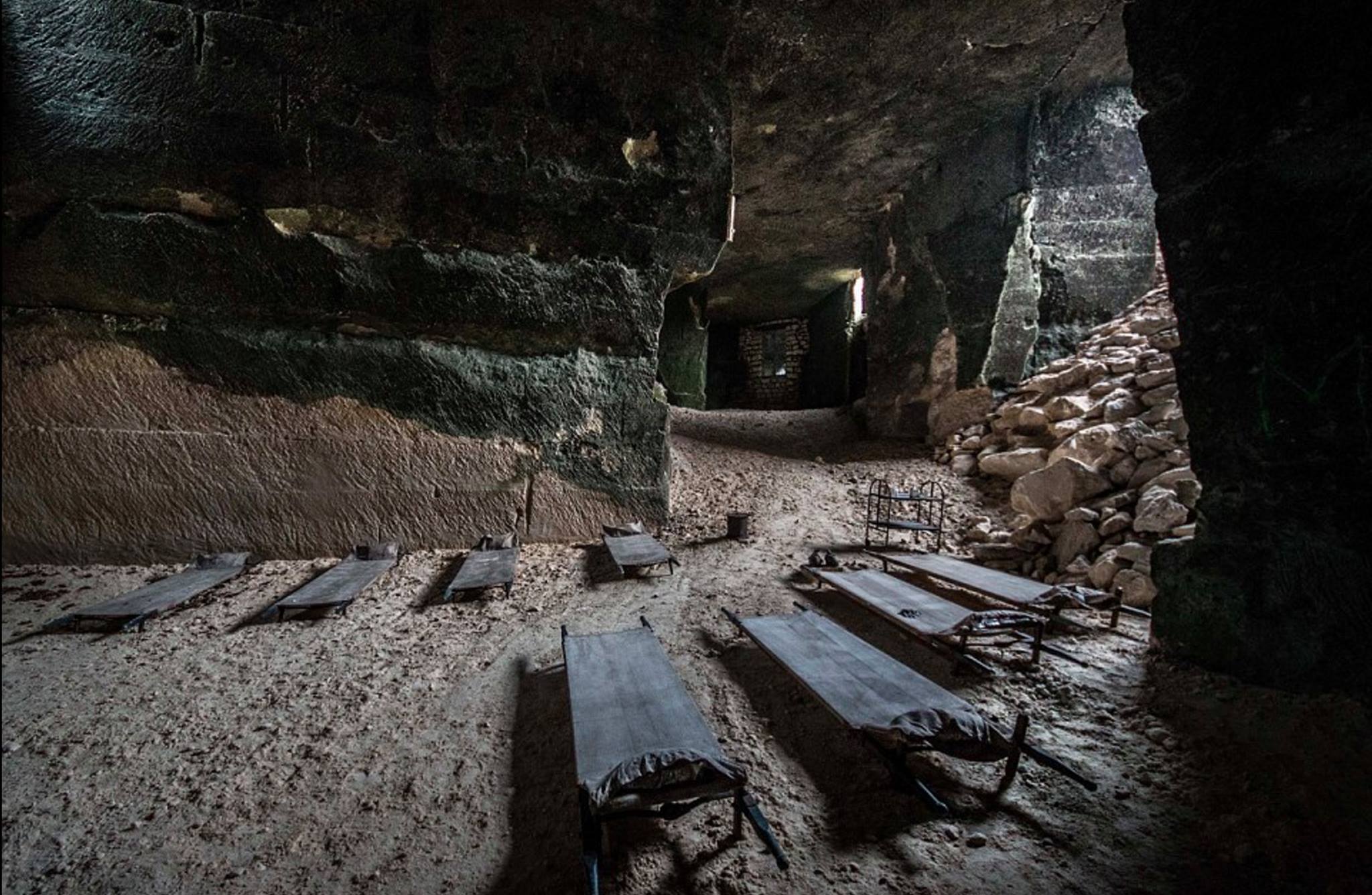 used once by trench soldiers during ww1. As images relate and although the surrounding nature, the place is preserved for large part in the original state of conservation, included the camp beds for the transport and recovery of the ills and the votive sculptures in the rock.